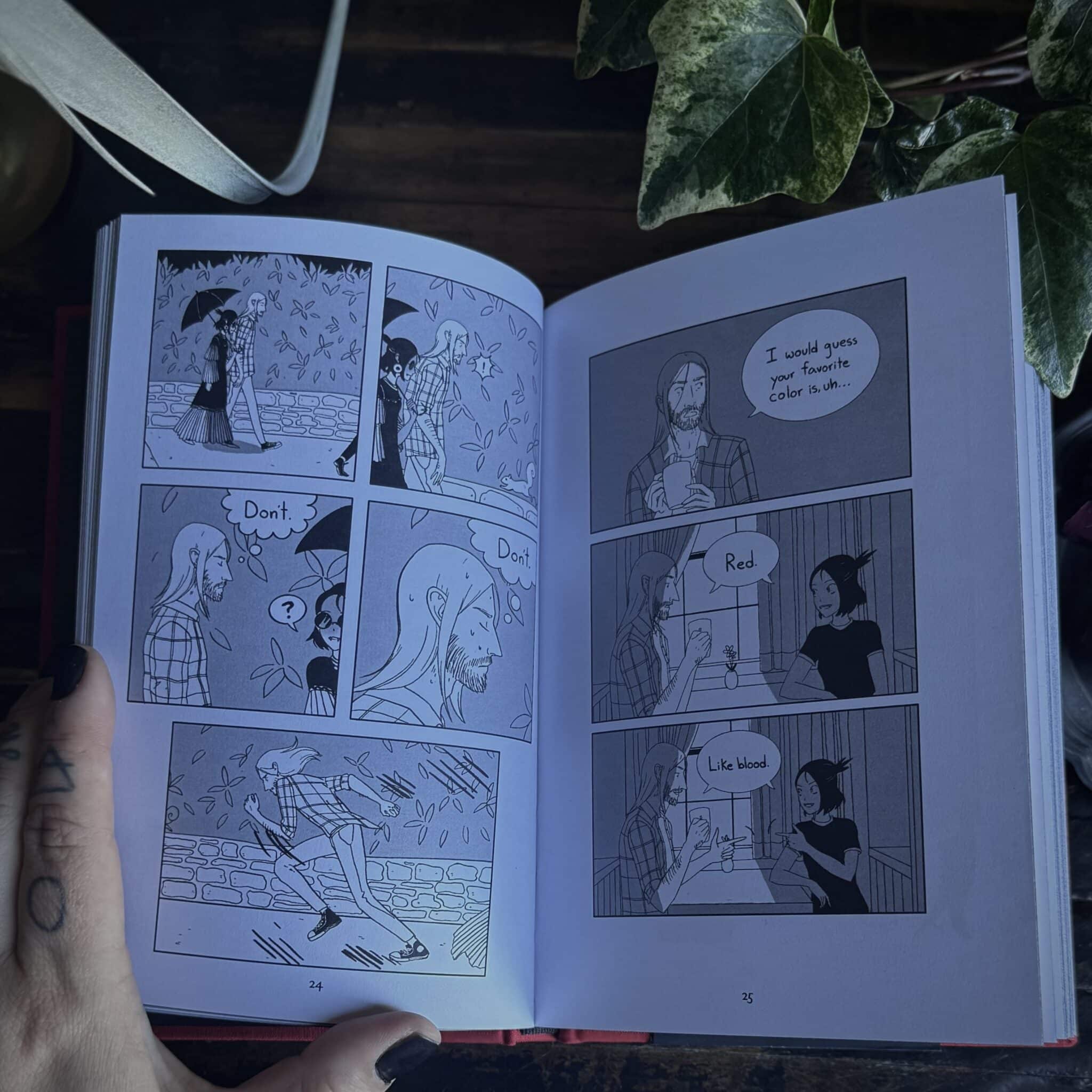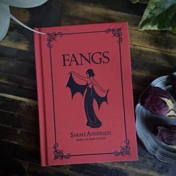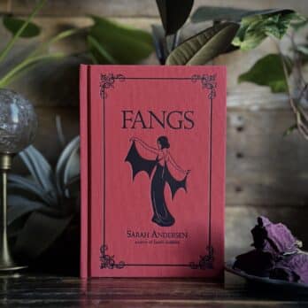 First featured as a webcomic series on Tapas, Fangs chronicles the humor, sweetness, and awkwardness of meeting someone perfectly suited to you but also vastly different. This deluxe hardcover edition of Fangs features an “engraved” red cloth cover, dyed black page trim, and 25 exclusive comics not previously seen online. Filled with Sarah Andersen’s beautiful gothic illustrations and relatable relationship humor, Fangs has all the makings of a cult classic.