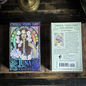 In creating Ethereal Visions Tarot, Matt Hughes has drawn inspiration from the Art Nouveau movement, adopting its distinctive style and meticulous approach to craftsmanship. The artist created two additional cards to supplement the traditional Major Arcana. Every detailed image in the 80-card deck is hand drawn and colored. This Luna Edition includes revised artwork reflecting greater diversity and each card is illuminated with iridescent silver foil stamping. Includes a 140-page expanded, full-color guidebook.