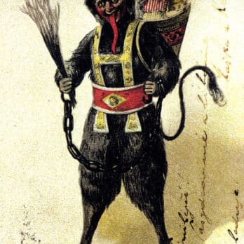 Krampus is a central-European folkloric horned creature that punishes children who have misbehaved during the holiday season. In Alpine Austria and some parts of Germany, this day was known as Krampusnacht, or “Krampus night,” when adults might dress up as Krampus to frighten children at their homes.