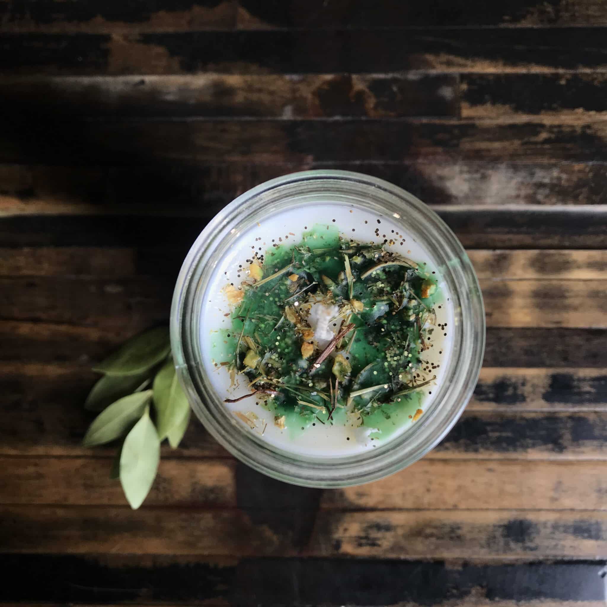Totally vegan and paraffin-free soy wax, USA -made, organic and wildcrafted herbs. Blessings!